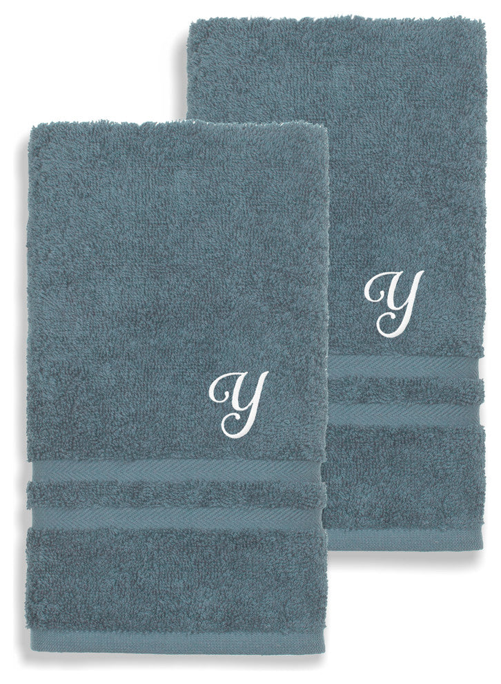 Denzi Hand Towels With Monogrammed Letter, Set of 2, Y