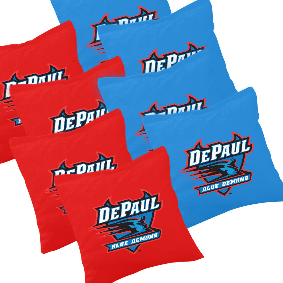Officially Licensed Set of 8 DePaul Cornhole Bags. Highest quality logo''d bags you''ll find anywhere!. Logo is applied using a heat transfer technique. Officially Licensed Collegiate ProductRegulation size (6 inches x 6 inches)Filled with whole kernel feed corn Made with 10 oz duck cloth fabricEach bag weights 1 pound (16 oz)