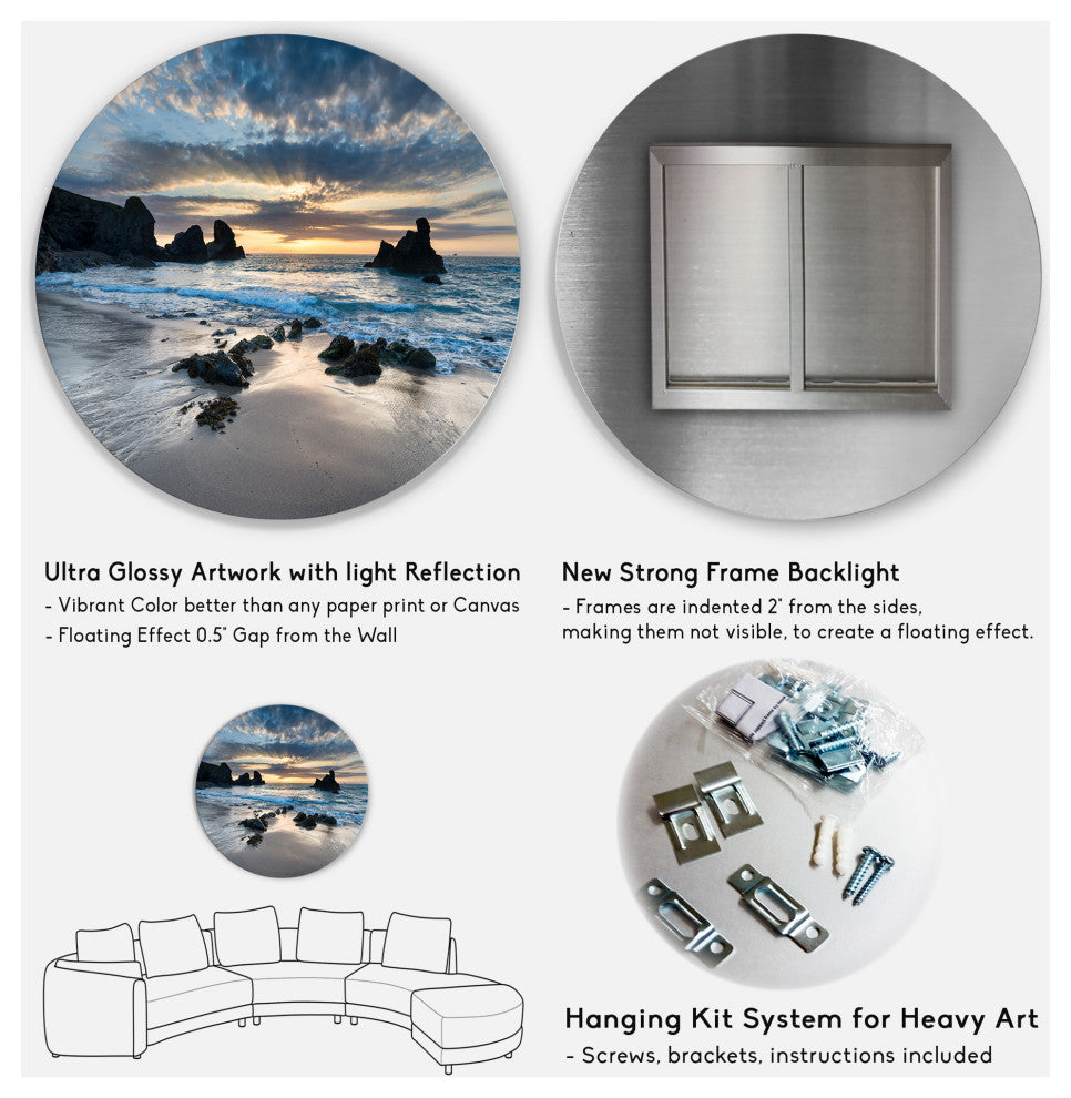 Designart 'Beautiful Porthcothan Bay' Seashore Metal Circle Wall Art, Disc of 11