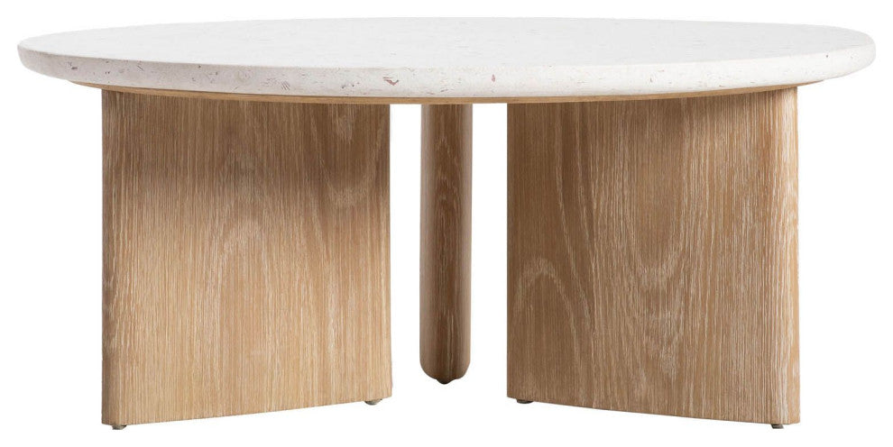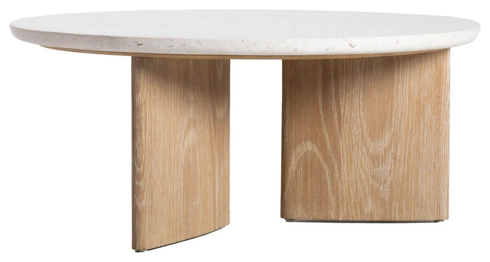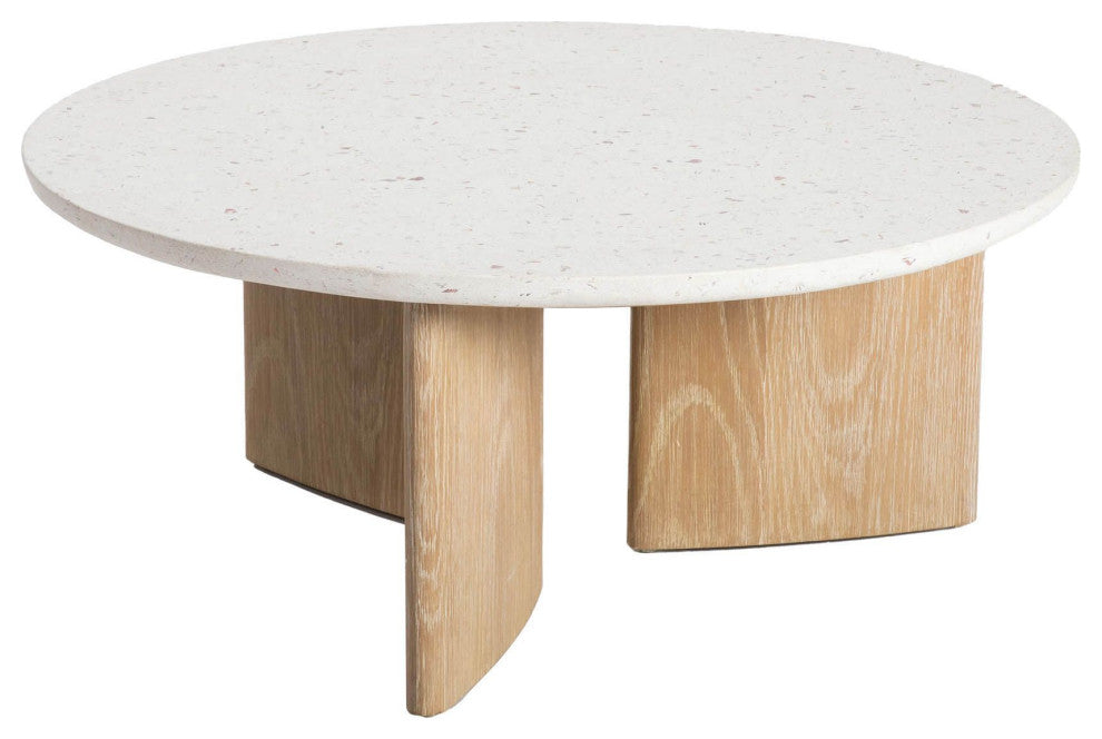 The Destiny Oak Coffee Table in Seashell Finish is a perfect blend of mid-century modern design and durable craftsmanship. Featuring a unique seashell terrazzo top and a solid oak and rubberwood base, this table offers both style and functionality. With foot levelers for stability, this piece is designed for everyday use and easy maintenance. Ideal for living rooms, this round table fits comfortably in sectional nooks or in front of sofas.Features:•  Overall product dimensions are 39" W x 39" D x 16" H•  Natural oak wood grains on the base show beautifully through the brushed finish•  Base allows for maximum stability while maintaining a unique look•  Durable terrazzo top adds a unique, long-lasting surface that resists wear•  Easy to clean surface makes maintenance hassle-free with just a dry cloth•  Foot levelers provide balance on uneven floors, ensuring a wobble-free experienceDimensions:Standard Coffee Table•  Assembled Product: 39 inches wide x 39 inches deep x 16 inches high•  Weight Capacity: 50 poundsLH Home is a Vancouver based company that has been in business for over twenty years. We have successfully established a presence across North America as a key distributor of high quality furniture and decor. Our expert team of buyers are always working to expand our collections, ensuring we''re ahead of the pack with the best product selection. A large majority of our products are produced with reclaimed FSC certified materials and recognized globally as environmentally friendly. Natural materials are what we love best, ranging from reclaimed timbers to natural stones and rattans.
