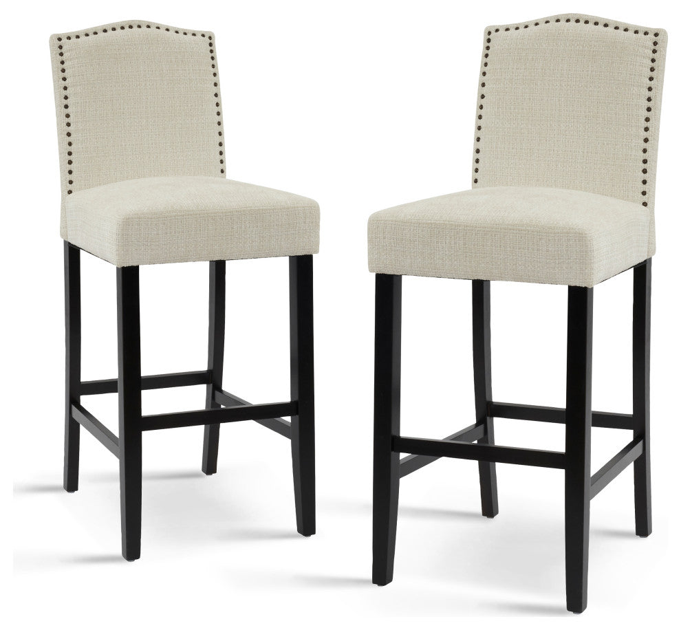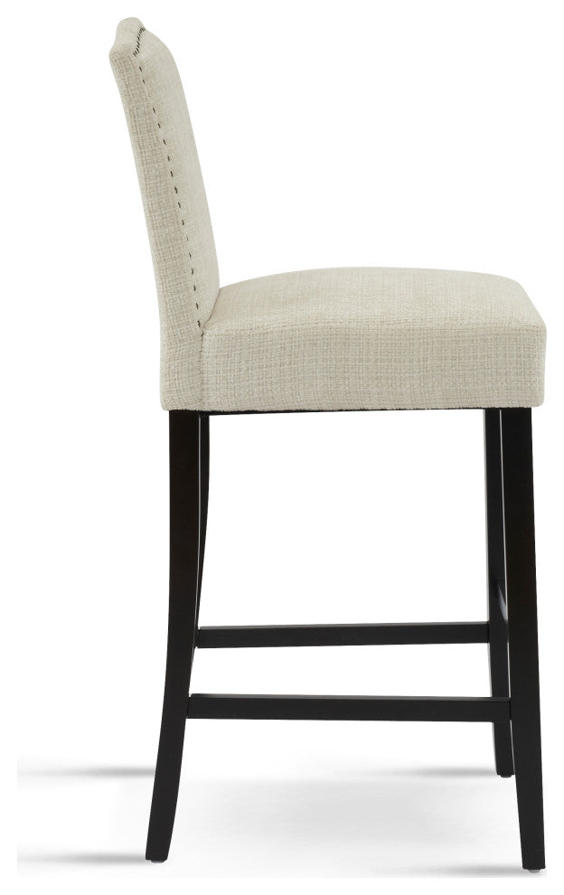 Deville 30" Counter Height Upholstered PU Bar Stools, Set of 2, Beige Fabric