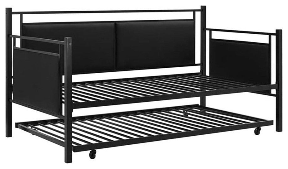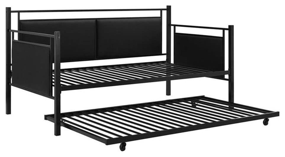 DHP Astoria Upholstered Twin Metal Daybed and Trundle in Black