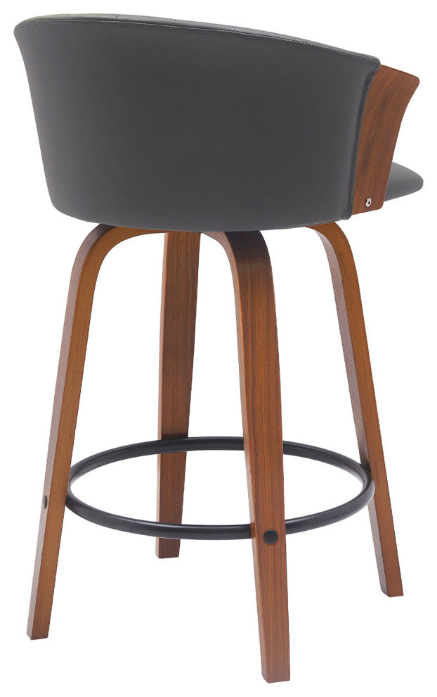 Diana Swivel Walnut Wood Counter Stool, Gray Faux Leather, 26"