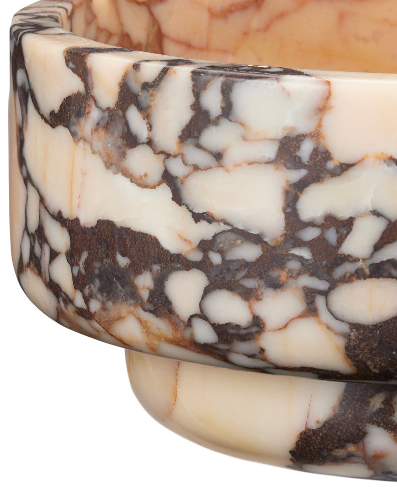 The Digby Small Bowl illustrates how artful nature can be. Made of Purple Breccia marble, the complex patterning of the stone makes this a natural focal point for a vignette, or a stunning specimen for holding fruits or vegetables, or left to stand on its own. The peach and purple decorative bowl will stand out whatever its purpose will be.
