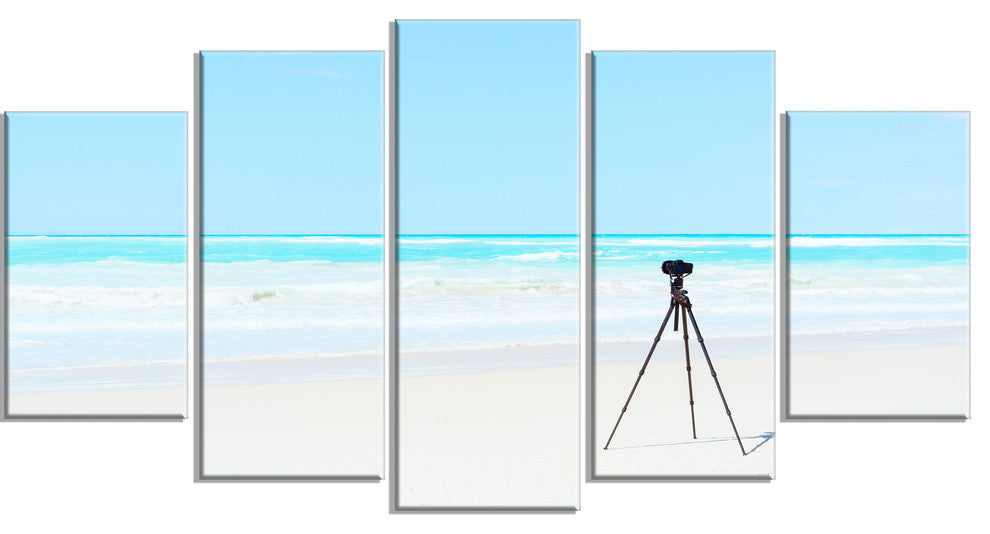 "Digital Camera And Tripod On Beach" Landscape Wall Art Print, 5 Panels, 60"x32"