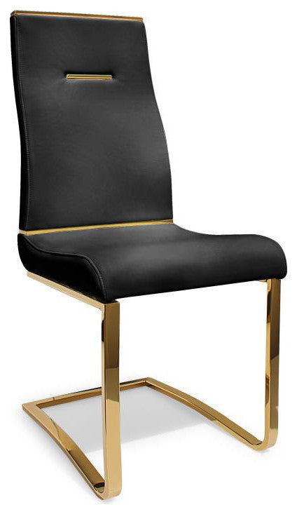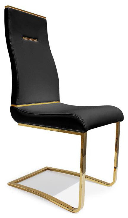Dining Chair PU Leather, Set of 2, Black, Gold