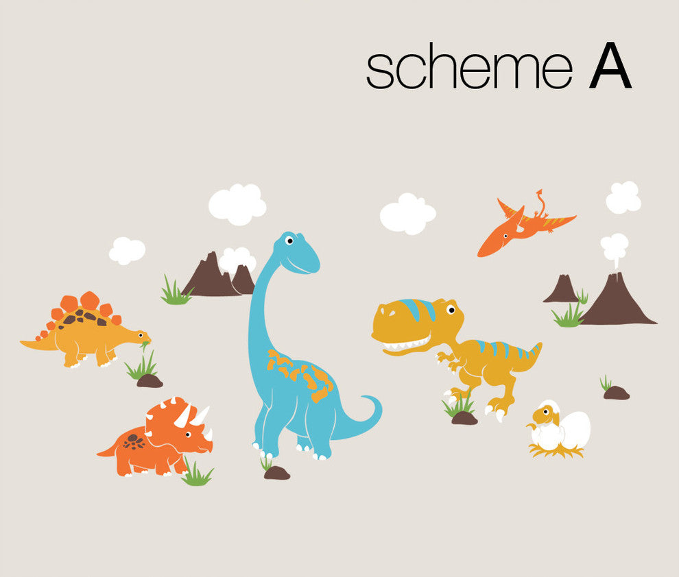 Kids love our Dinosaur Wall Decals! This is the perfect kids room wall decal and will transform it into a Dino Paradise! Size: Brachiosaurus(approx): 32"w x 54"hTyrannosaurs(approx): 42"w x 30"hStegosaurus(approx): 32"w x 19"hTriceratops(approx): 29"w x 20"hPteranodon(approx): 24"w x 15"hWhats Included: DinosaursPlantsRocksEggsVolcanosCloudadditional information: All of the dinosaurs and plants/volcanoes/clouds are separate decals so you can arrange them any way you wish. Egg shell, horns, teeth, eyes and toenails are always white.
