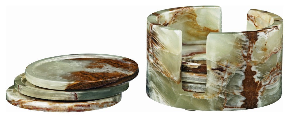 Protect your favorite table''s surface from unwanted rings or markings with our Dionysus Coasters. Included in this set is a round caddy that ensures the beverage coasters are conveniently stored and can be attractively displayed on your coffee table or kitchen countertop.
