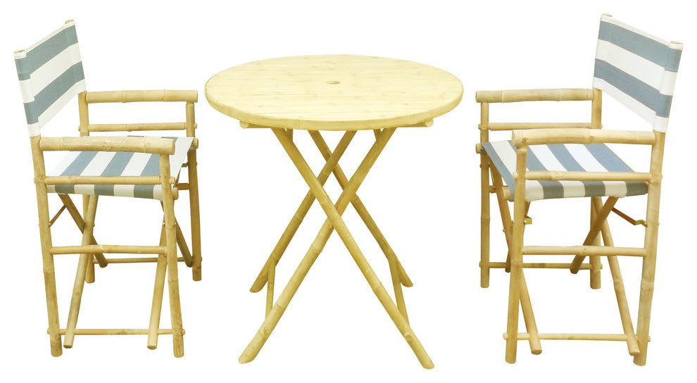 Director Round 3-Piece Table Set, Navy and White Stripe