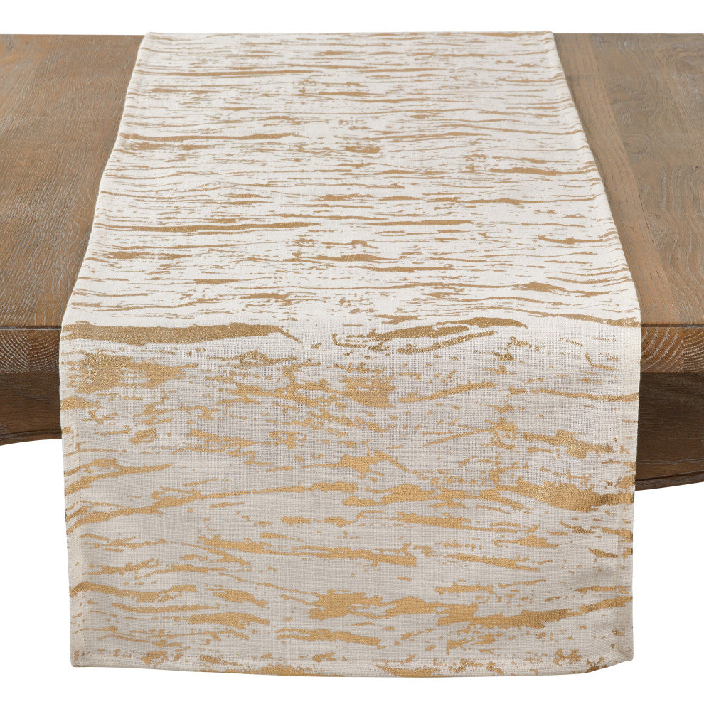 Distressed Foil Metallic Design Glam Cotton Table Runner, Gold, 16"x72"