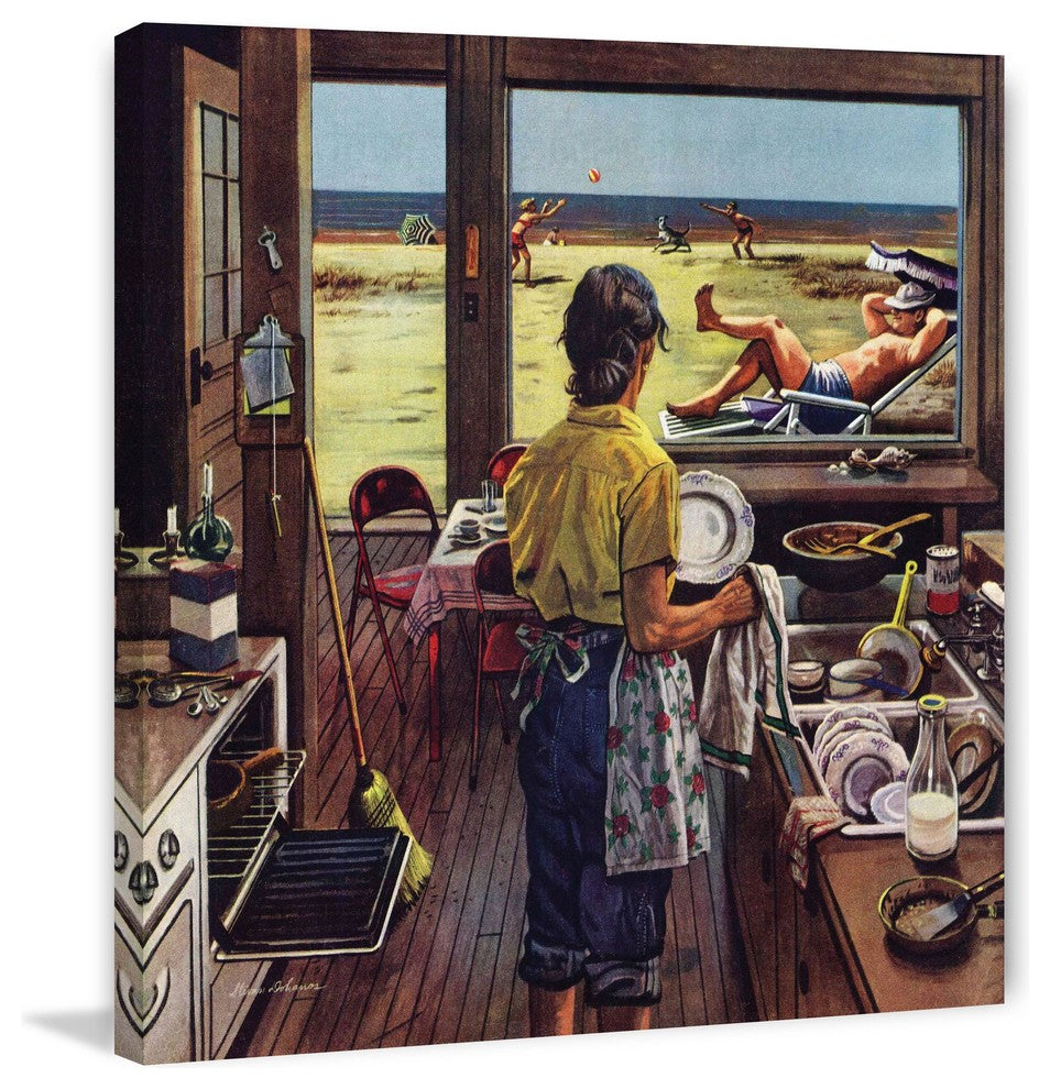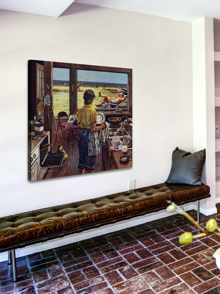 "Doing Dishes at the Beach" Print on Canvas by Stevan Dohanos