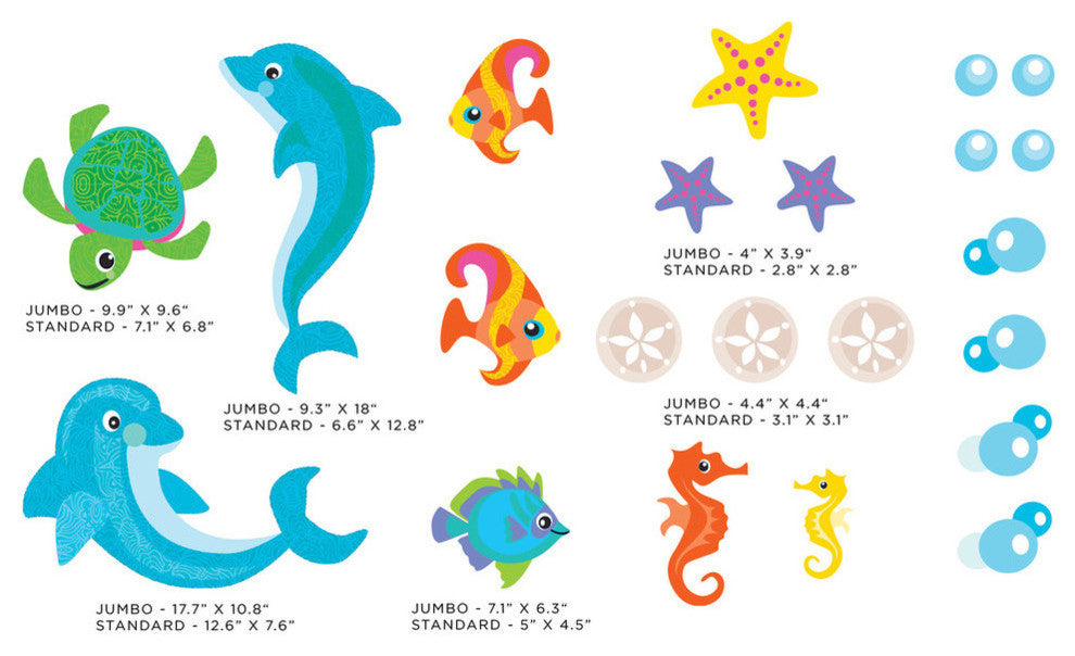 Dolphin Fabric Wall Decals With Fish, Sea Turtle, and More, Standard Size