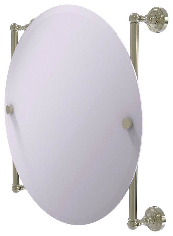 Dottingham Round Frameless Rail Mounted Mirror, Polished Nickel