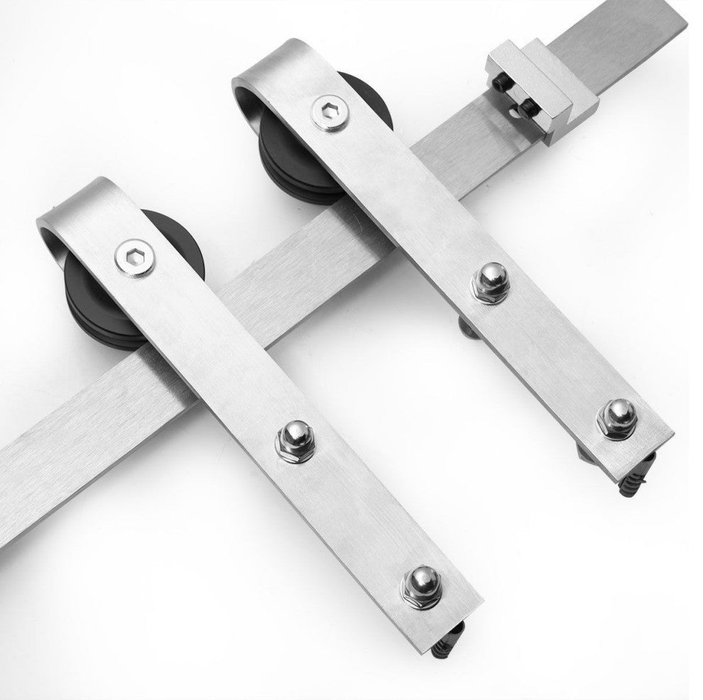 Double Barn Doors Opaque Glass / Sete 6900 White Silk / Silver 13FT Rail, 48" X 96" ( 2* 24x96)