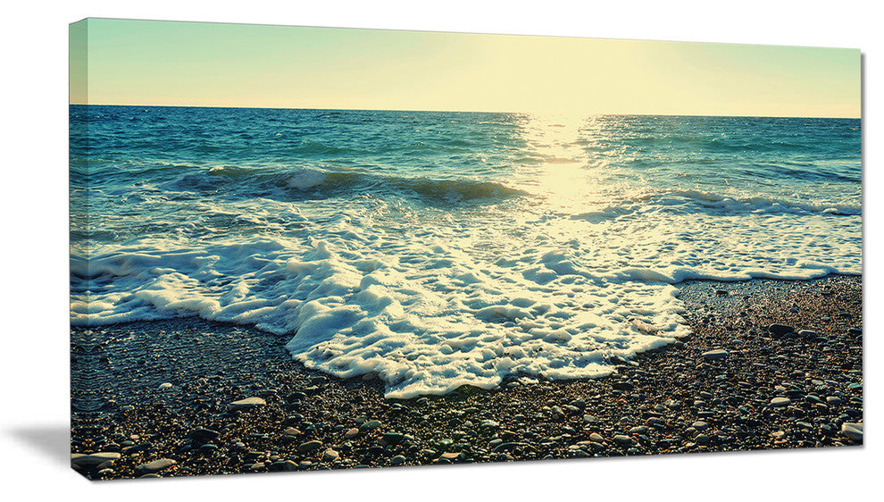 "Dramatic Blue Waves On Beach" Seashore Canvas Print, 40"x20"