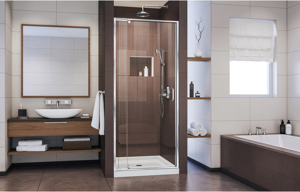 This beautiful and efficient DreamLine shower kit includes a FLEX™ pivot shower door and a coordinating SlimLine™ shower base. The FLEX is a fully adjustable shower door that can be customized to fit your shower space for an easy installation. The SlimLine shower base incorporates a low profile design for a sleek modern look. DreamLine shower kits offer a complete solution to transform a shower space.