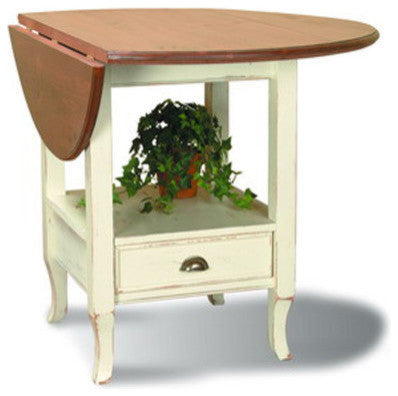 Made from solid wood with a distressed white base, the Drop Leaf Dining Table has an elegant, antique look. Pair it with beach style decor for a cohesive feel. Made in USA.