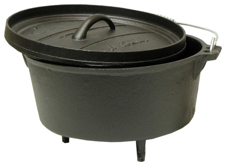 Durable 4 Qt Dutch Oven with feet. Measures 11.50"W x 7"H. Great cooking choice of many chefs and home cooks.Great addition to your kitchen items. Durable item.