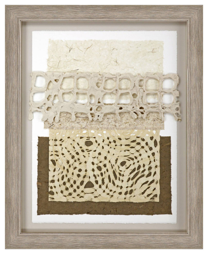 Exclusive mixed media. Framed in a distressed silver finish moulding.