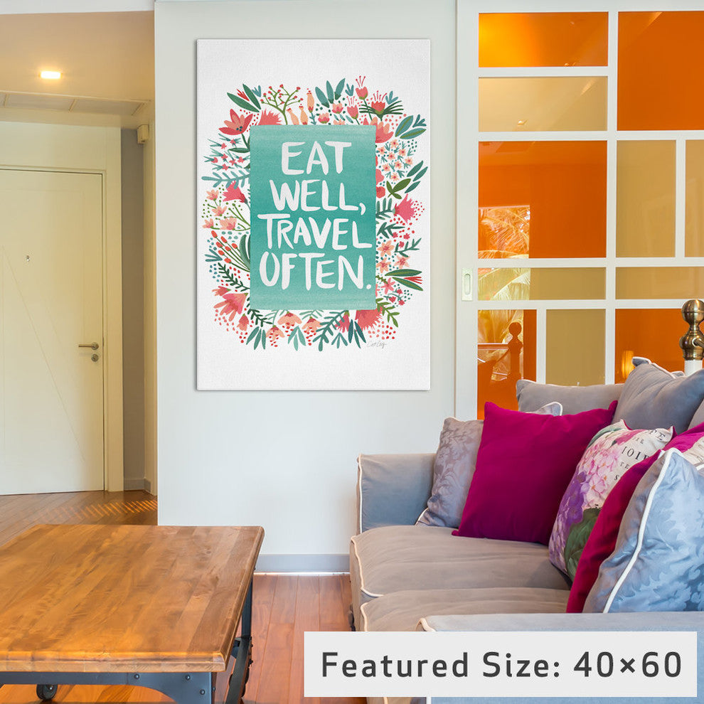 "Eat Travel White Artprint" by Cat Coquillette, 26x18x1.5