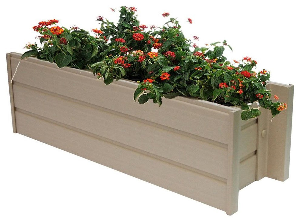 This ecoFLEX Rectangular Window Planter is perfect for flowers-plants-herbs. Can be painted for a custom look. These attractive, durable window boxes are also eco-friendly. Easily assembled in 5 minutes or less and no tools are required. Made of ecoFLEX material. ecoFLEX is a proprietary formula that incorporates reclaimed wood and plastic into the material that allows the product to be eco-friendly and a great value as it will outlast most other products. ecoFLEX is 100% non toxic and does not absorb moisture. There is nothing in ecoFLEX that could harm your garden or animals. Resistant to warping, twisting and fading. 10 year limited manufacturer''s warranty.