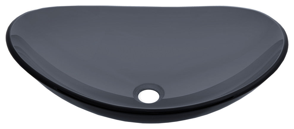 The Eden Bath EB_GS47 Dark Gray Canoe Above Counter Round Tempered Glass Vessel Sink is an elegant choice for any modern bathroom space. The sink is a contemporary solid dark gray in color, smooth inside and out. The sink is made of high quality tempered glass. We recommend that you also purchase a mounting ring and drain with this gray glass vessel bathroom sink in the same finish of your faucet.