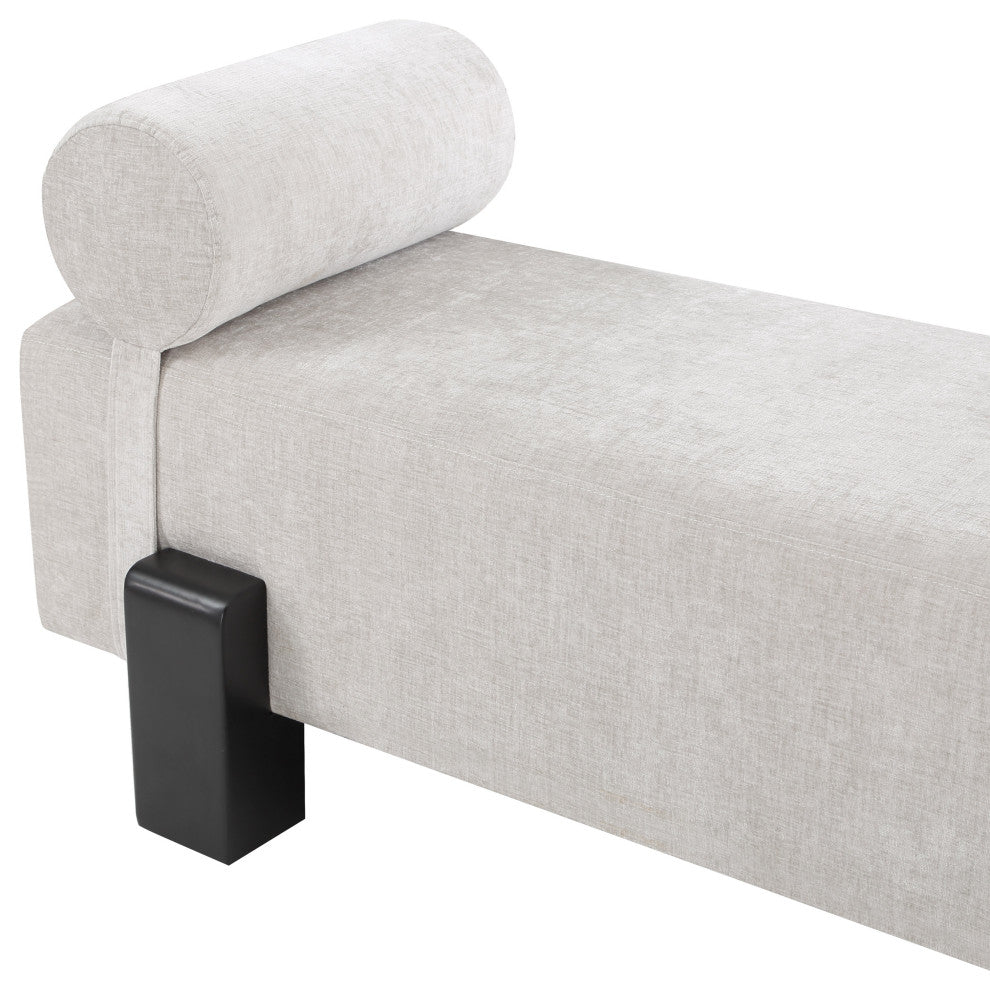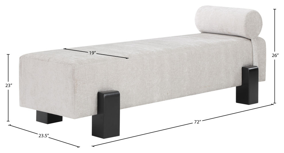 Go for a cozy, chic vibe with this grey Edison chenille fabric bench, a versatile and stylish addition to your home. Upholstered in soft grey chenille fabric, it epitomizes comfort and sophistication. The rich black finish of the solid wood base adds warmth and durability, ensuring this bench is both functional and timeless. A bolster pillow is included for added comfort and a touch of elegance. The bench''s modern mid-century design seamlessly complements a range of decor styles in the entryway, bedroom, or living room.Overall Product Dimensions: 72" W x 23.5" D x 26" HSoft Light Grey Chenille FabricRich Black FinishSolid WoodBolster Pillow IncludedMid-Century Modern DesignSeat Dimensions: Seat Width: 72"Seat Height: 23"Seat Depth: 19"