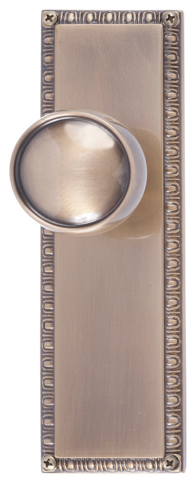 A design element first found in ancient Greek architecture and also used by the Romans, this motif is common in neoclassical architecture. Now imagine this magnificent item in you home! Most stunning in the Polished Brass or Nickel. Displayed with a Manhattan knob. All finishes are hand rubbed & assembled in the USA.