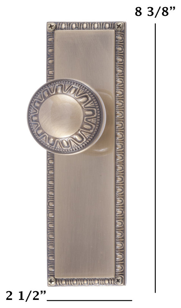 A design element first found in ancient Greek architecture and also used by the Romans, this motif is common in neoclassical architecture. Now imagine this magnificent item in you home! Most stunning in the Polished Brass or Nickel. Displayed with a Egg & Dart Knob. All finishes are hand rubbed & assembled in the USA.