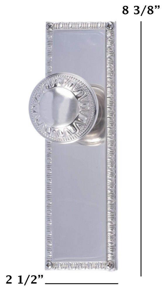 A design element first found in ancient Greek architecture and also used by the Romans, this motif is common in neoclassical architecture. Now imagine this magnificent item in you home! Most stunning in the Polished Brass or Nickel. Displayed with a Egg & Dart Knob. All finishes are hand rubbed & assembled in the USA.
