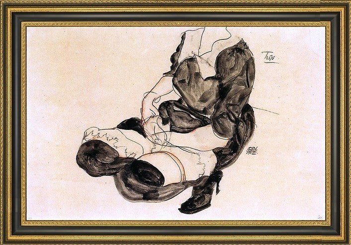 18" x 27" Egon Schiele Female Torso Squatting framed premium canvas print reproduced to meet museum quality standards. Our Museum quality canvas prints are produced using high-precision print technology for a more accurate reproduction printed on high quality canvas with fade-resistant, archival inks. Our progressive business model allows us to offer works of art to you at the best wholesale pricing, significantly less than art gallery prices, affordable to all. This artwork is hand stretched onto wooden stretcher bars, then mounted into our 3 3/4" wide gold finish frame with black panel by one of our expert framers. Our framed canvas print comes with hardware, ready to hang on your wall. We present a comprehensive collection of exceptional canvas art reproductions by Egon Schiele.