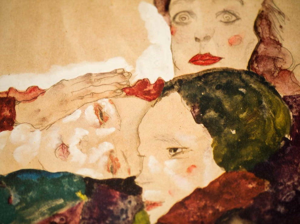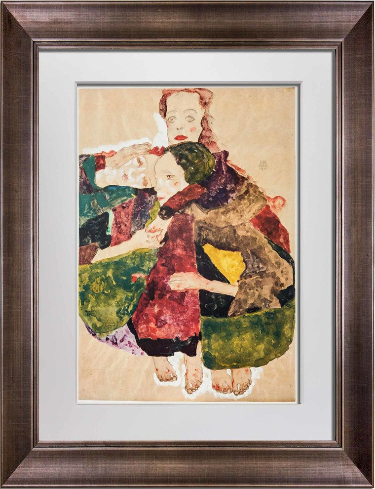 Egon Schiele Limited Edition Lithograph, Group of 3 Girls, 1911, Signed, Framed