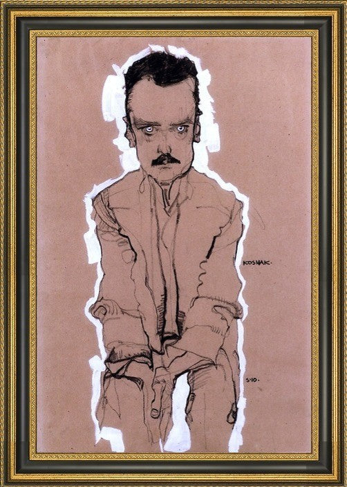 18" x 27" Egon Schiele Portrait of Eduard Kosmack Frontal with Clasped Hands framed premium canvas print reproduced to meet museum quality standards. Our Museum quality canvas prints are produced using high-precision print technology for a more accurate reproduction printed on high quality canvas with fade-resistant, archival inks. Our progressive business model allows us to offer works of art to you at the best wholesale pricing, significantly less than art gallery prices, affordable to all. This artwork is hand stretched onto wooden stretcher bars, then mounted into our 3 3/4" wide gold finish frame with black panel by one of our expert framers. Our framed canvas print comes with hardware, ready to hang on your wall. We present a comprehensive collection of exceptional canvas art reproductions by Egon Schiele.