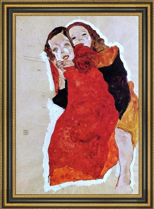 Egon Schiele Two Girls - 18" x 27" Framed Premium Canvas Print