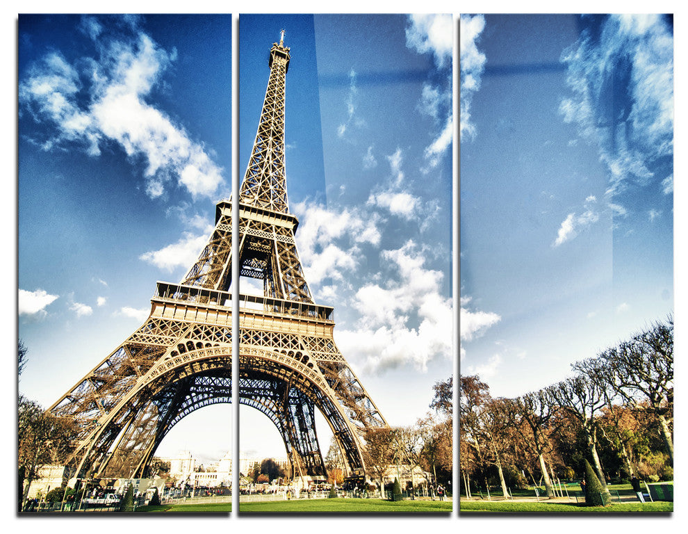 "Eiffel Under Dark Cloudy Sky" Photo Metal Wall Art, 3 Panels, 36"x28"
