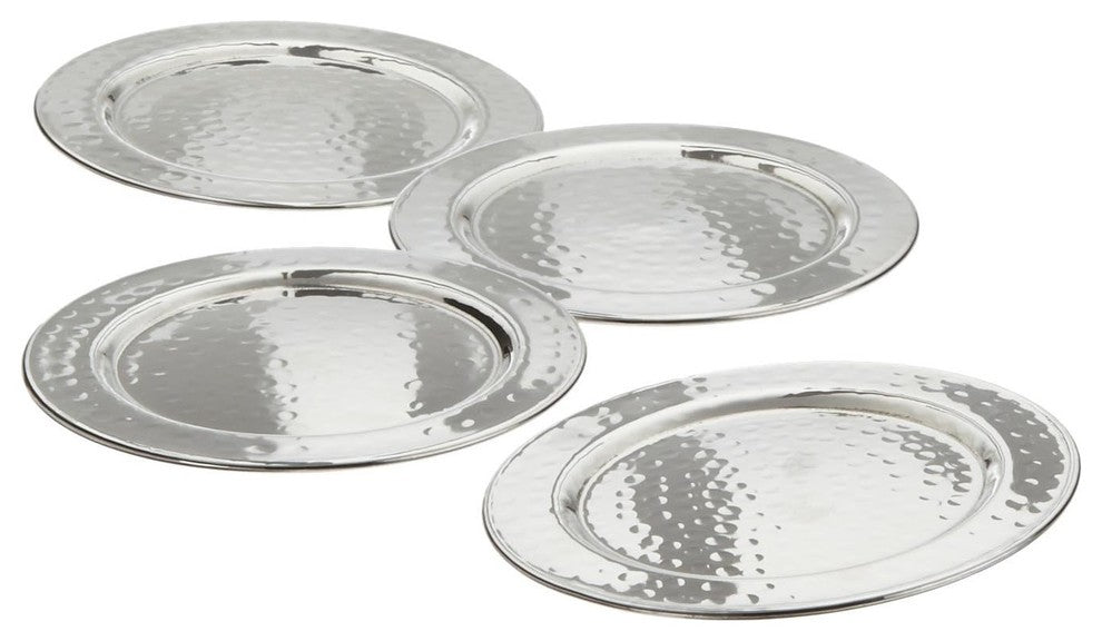 These coasters are hand crafted from stainless steel. The subtle hammered finish resists condensation. Can also be used for pillar candles or votives. Easy cleaning dishwasher safe.Set of 4 coastersMeasures 4" in diameter