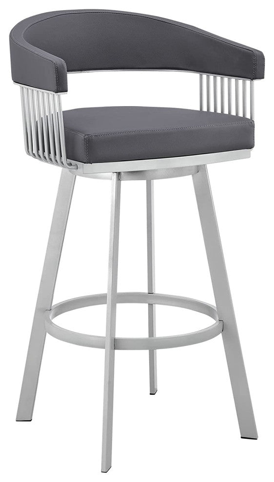 Elegant Counter Stool, Swiveling PU Leather Seat With Slatted Sides, Slate Grey