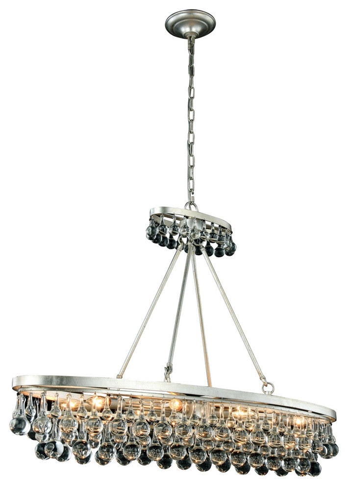 Make it rain in the kitchen, foyer, or dining room with Bettina collection hanging fixtures. Stunning clear royal-cut crystal droplets drip from a sturdy double-layer cylindrical steel frame and chain. Available in a bronze, polished-nickel, or silver-leaf finish, this is one downpour you won''t mind getting caught in.