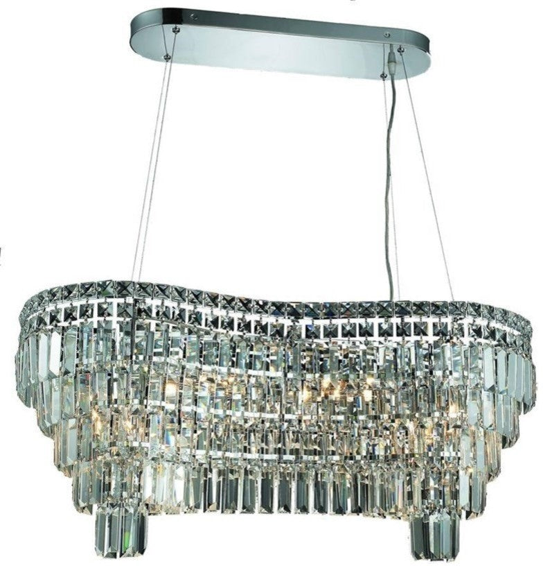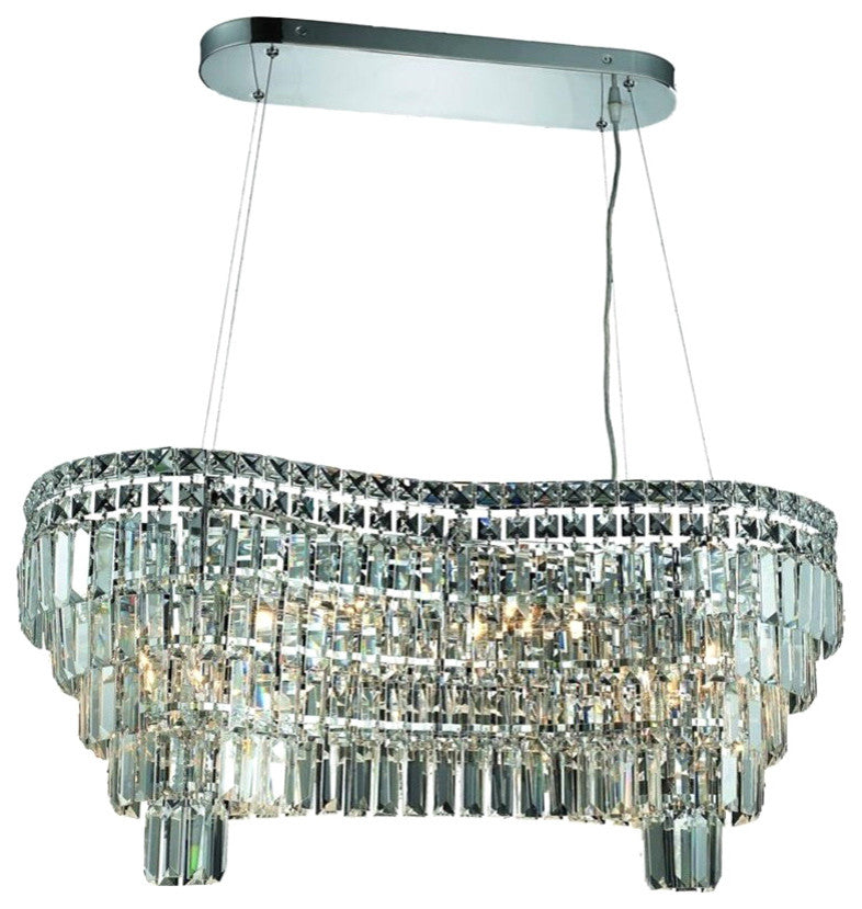 Elegant Maxim Dining Room Light, Chrome Finish With Royal Cut Crystal