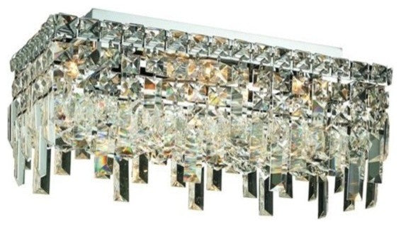 Elegant Maxim Flush Mount, Chrome Finish With Royal Cut Crystal