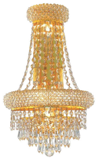 This classic, elegant Empire series is flowing with symmetry creating a dramatic explosion of brilliance. Primo is a dynamic collection of chandeliers that add decorative drama to any setting. Illumination- Bulb Type: E12- Number of bulbs (not included): 4- Max Wattage: 240Style- Finish: Gold- Collection: Primo- Chain/Wire Included: 10"- Crystal Color: Clear- Crystal Trim: Royal CutAdditional Info- UL & Ulc rated- Voltage: 110V-125V