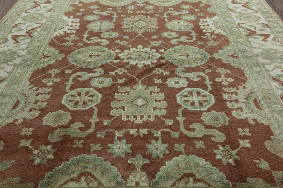 "Oushak rugs originated in the small town of Oushak in west central Anatolia, roughly 100 miles south of the city of Istanbul in Turkey. Oushak has produced some of the most decorative Persian influenced rugs of all times. Oushak has been a production center of Turkish rugs since the 15th century. In the late 15th century the ''design revolution'' took place. Before, producing carpets was part of the nomad culture, meeting people''s daily needs, but for the first time the works of designing and weaving rugs were split in two. These Turkish rugs began to be produced commercially. From the 16th up to the 18th century the most famous manufacturers of ottoman times worked in Oushak. A special heirloom wash produces the subtle color variations that give rugs their distinctive antique look."