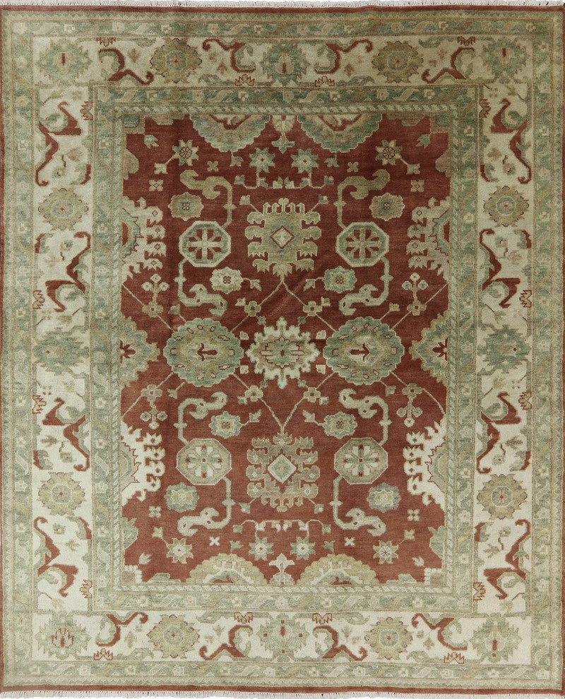 Elegant Traditional 8'x10' Brown & Ivory Oushak Hand Knotted Wool Area Rug H8194