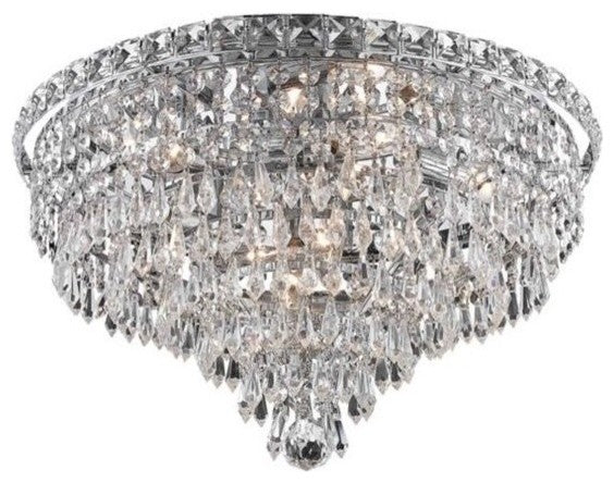 Elegant Tranquil Flush Mount, Chrome Finish With Royal Cut Crystal