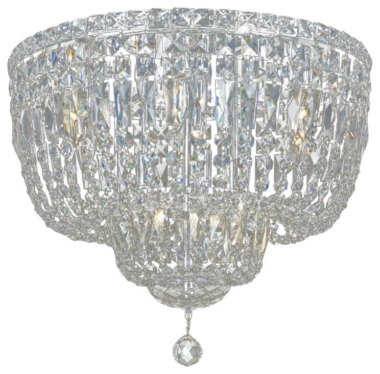 Elegant Tranquil Flush Mount, Chrome Finish With Royal Cut Crystal