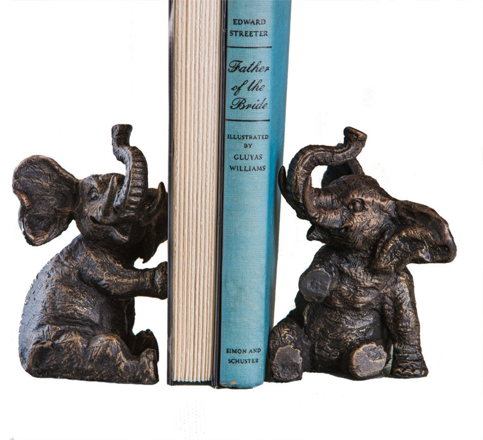 Elephant Bookends, Set of 2, Bronze