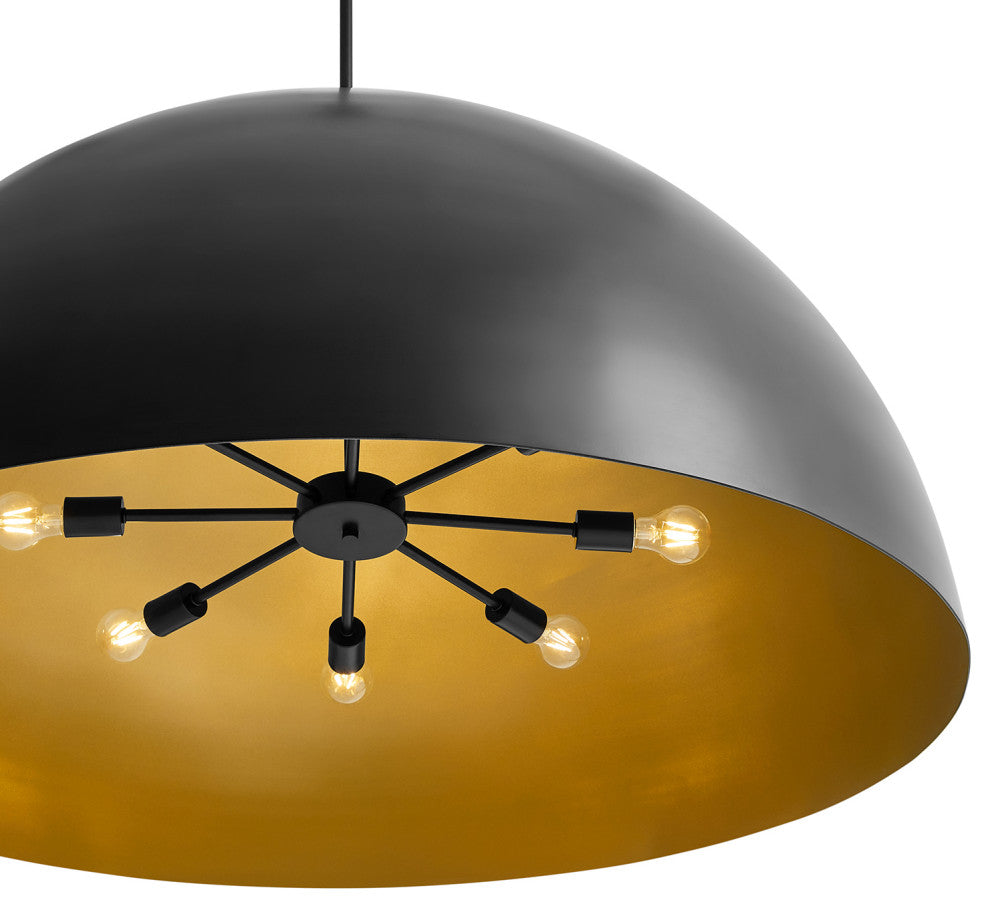 Elias Dome Pendant 8-Light Champagne Gold interior Shade, Matte Black