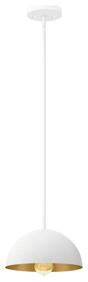 Elias Dome Pendant Matte White/Champagne Gold, 1-Light 9"Lx9"Wx5.5"H
