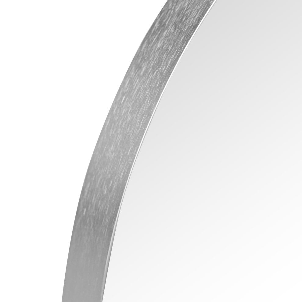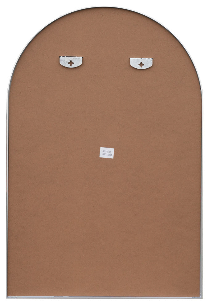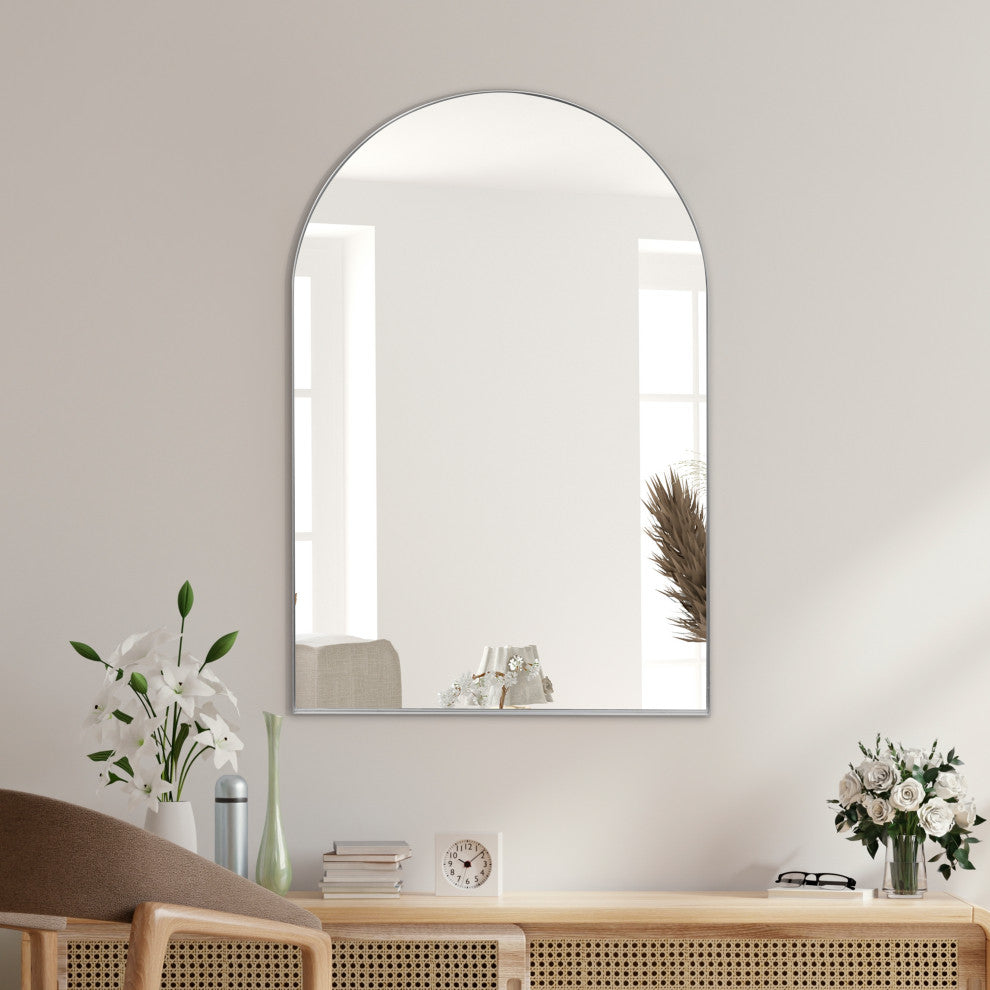This sleek, modern mirror has a classic arched top that will add a vintage vibe to any space. The versatile wall-hung or leaning design is strengthened by a narrow metal frame. Its vertical orientation is ideal for a bathroom vanity, bedroom or entry area.Features:• Mirrored glass has a minimalist nickel metal frame• Contemporary 24" wide design visually expands your space• Add vintage style to a bedroom or living room with this versatile mirror''s timeless shape• Hanging device: MDF backboard•  with • Mirror Orientation: Vertical• Body Material: Metal• 36 inches high x 24 inches wide x 1.5 inches deepAbout us:You see an ordinary mirror.We see an enhancement to help with making your fashionable statement.A perfectly smooth-edged frame with LED lighting and uniform surface casts a flaring reflection of the subject and surroundings. Our vast mirror catalog includes a variety of designs, shapes and sizes.JONATHAN Y Lighting - a fashion revolution in home decor.
