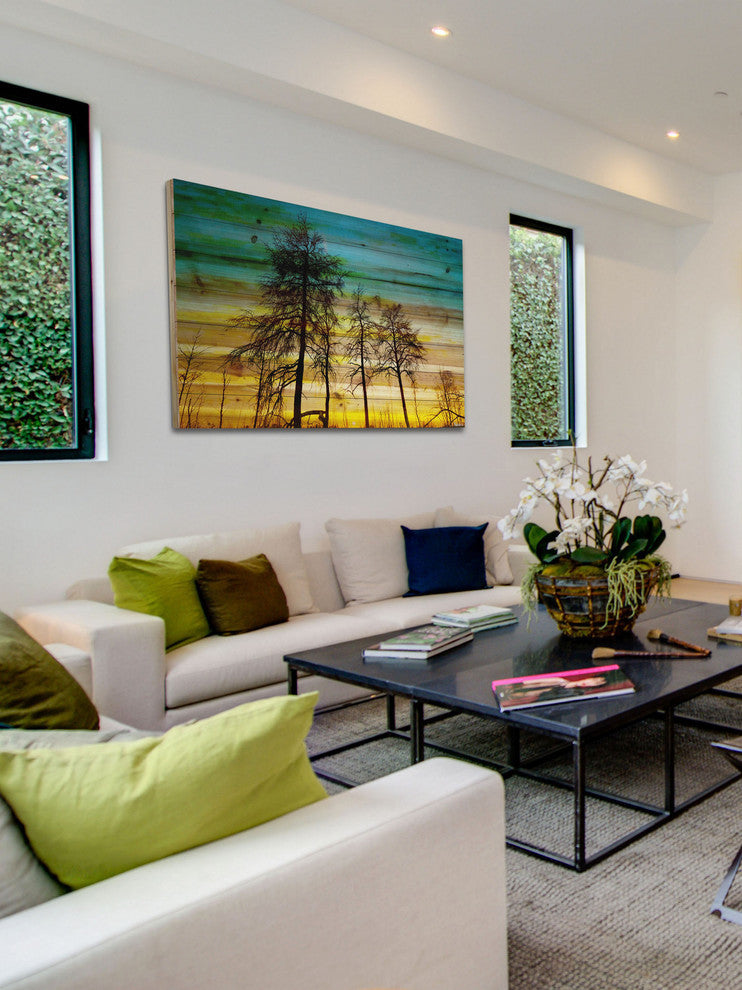 "Emerald Sky" Print on Natural Pine Wood, 45"x30"